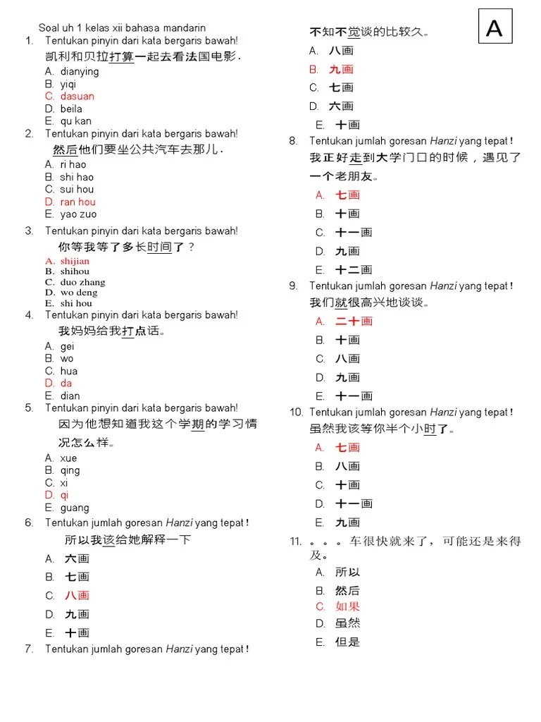 Soal Mandarin Kelas 10 / Soal Mandarin Kls X - Kesukaran soal ujian sekolah (us) bahasa mandarin kelas ix basic tahun.